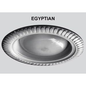 Egyptian Style Decorative replacement Wambaugh trims for recessed lighting are made through injection molding of durable ABS plastic and fit the standard 6-inch light canisters. These decorative trims are made in white and come in Egyptian, Roman, Florentine, Victorian and Art Deco design motifs. These affordable light trims make it possible for anyone to maintain period consistency when transforming the look of their home or office. Installation of the trims is easy to do. These decorative trims can be painted by following any paint manufacturer's specifications for painting plastic. At the right are samples of how the trims can look when faux finished to match your satin nickel or copper knobs or metalic bronze molding. EASY INSTALLATION: 1. Unscrew the light bulb and locate the springs which hold up the baffle and trim 2. Disconnect the springs from the inner can and pull down the old baffle and trim 3. Pull off the old trim and exchange it with your new Wambaugh decorative trim 4. Re-attach the springs in the holes where they were before and screw in the light bulb. Requires a 6" recessed light can with removable outer ring. PLEASE NOTE: This trim kit is for can lights with replaceable rims only!