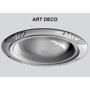 Art Deco Style Decorative replacement Wambaugh trim for recessed lighting are made through injection molding of durable ABS plastic and fit the standard 6-inch light canisters. These decorative trims are made in white and come in Egyptian, Roman, Florentine, Victorian and Art Deco design motifs. These affordable light trims make it possible for anyone to maintain period consistency when transforming the look of their home or office. Installation of the trims is easy to do. These decorative trims can be painted by following any paint manufacturer's specifications for painting plastic. At the right are samples of how the trims can look when faux finished to match your satin nickel or copper knobs or metalic bronze molding. EASY INSTALLATION: 1. Unscrew the light bulb and locate the springs which hold up the baffle and trim 2. Disconnect the springs from the inner can and pull down the old baffle and trim 3. Pull off the old trim and exchange it with your new Wambaugh decorative trim 4. Re-attach the springs in the holes where they were before and screw in the light bulb. Requires a 6" recessed light can with removable outer ring.