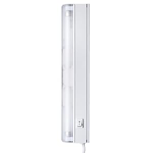 8W, 120V 12.5'' T5 fluorescent white metal undercabinet light. Includes plug in cord and switch. UL listed. ENERGY STAR rated. Standard F8T5 bulb included.